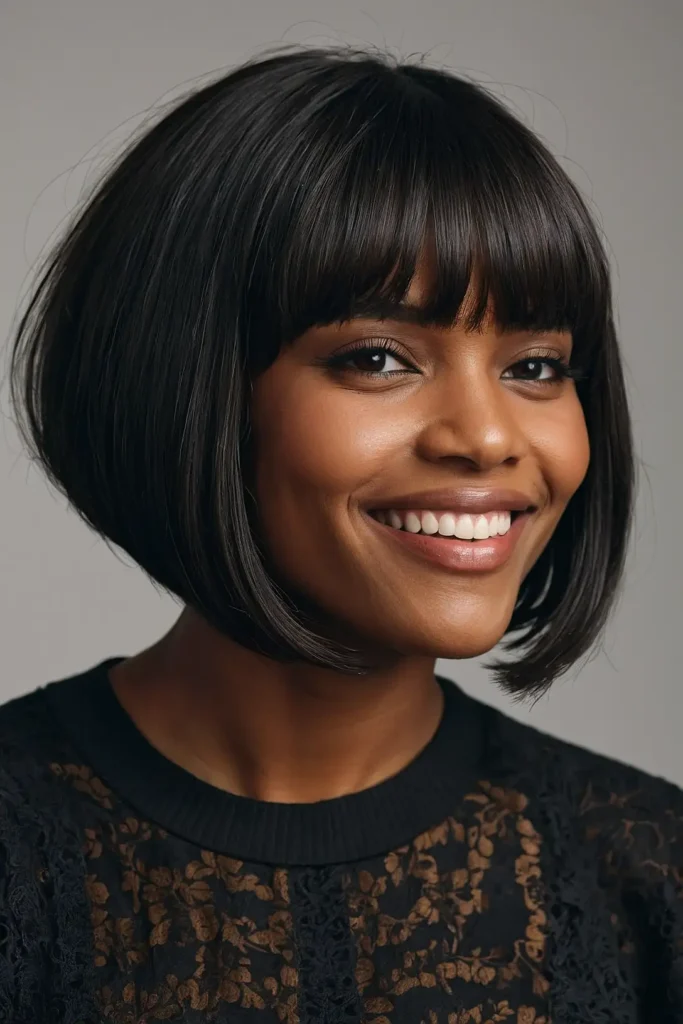 The bob with bangs combination offers Black women a versatile, face-framing style that works beautifully across different hair textures.